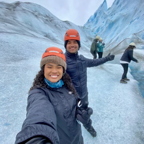 Natanael e Pâmela Cruz escolheram a Patagônia para suas férias, região que se estende pelo sul da Argentina e do Chile. Conhecida por suas paisagens dramáticas, com montanhas imponentes, geleiras espetaculares, estepes vastas e fiordes serenos, é um paraíso para os amantes da natureza e do turismo de aventura. Além de ser um refúgio para diversas espécies, como pumas e baleias francas, a Patagônia oferece atividades como trekking, pesca e observação de aves.