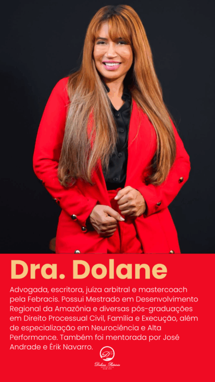 Dolane Patrícia é advogada, escritora, Juíza Arbitral e Master Coach pela Febracis. Mestre em Desenvolvimento Regional da Amazônia, é pós-graduada em Direito Processual Civil, Direito de Família e Execução, com formação complementar em Neurociência e Alta Performance. Atua nas áreas de Direito de Família e Direito do Trabalho, com enfoque preventivo, técnico e humanizado.
