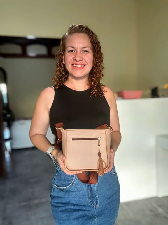 Hoje, a Dora Bags trabalha exclusivamente com material sintético, produzindo bolsas femininas, nécessaires de vários modelos e kits maternidade ✨. O ateliê se tornou sua principal fonte de renda, garantindo conquistas como viagens e novos planos para o futuro 🌍. Vendendo por catálogo online, WhatsApp e Instagram 📲, Nathália sonha em ampliar a produção, formar uma equipe e, no futuro, abrir uma loja com produtos personalizados e bolsas à pronta entrega 🏬.