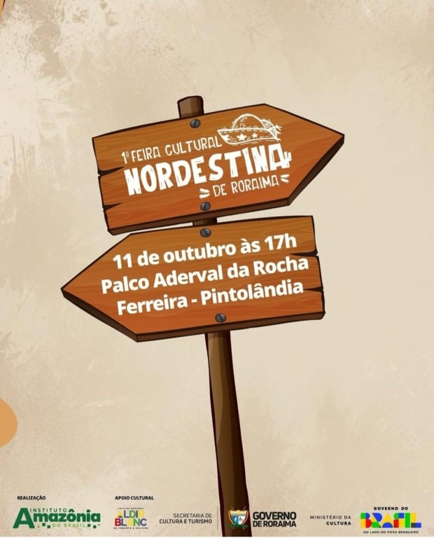 🎉 A 1ª Feira Cultural Nordestina de Roraima acontece no próximo sábado (11). Vai ter muito forró, comidas típicas como cuscuz, carne de sol e tapioca, além de repente, declamação e literatura de cordel. 💃🪗 Venha viver essa tradição no Palco Aderval da Rocha Ferreira, bairro Pintolândia. 🗓️ 11 de Outubro | 🕔 17h | ENTRADA FRANCA!
