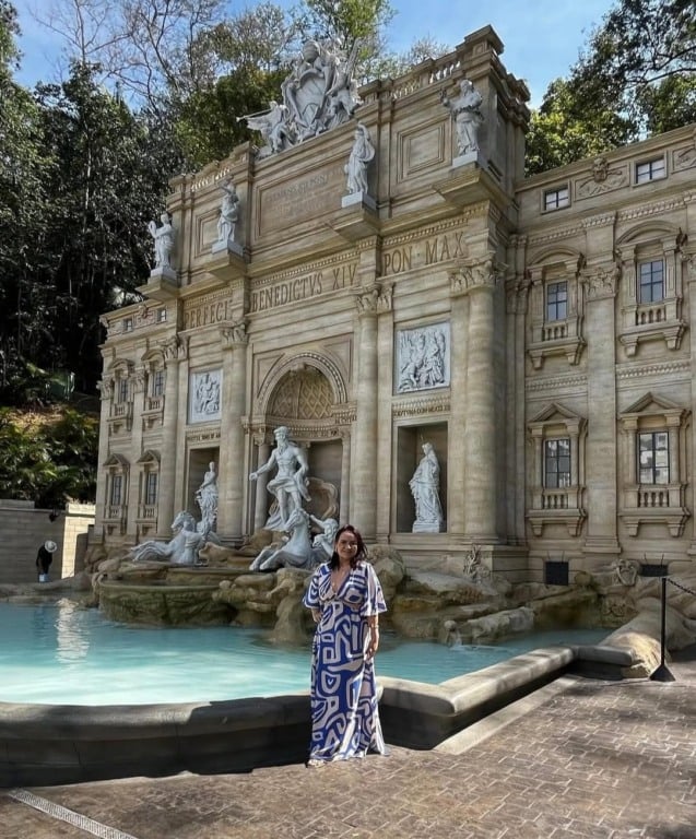 😅💕 Andreia Melo curte férias pelo interior de São Paulo! A assistente legislativa visitou Serra Negra e conheceu a charmosa Fontana Di Trevi, um pedacinho da Itália no Brasil. 🇮🇹⛲️ Por lá, jogou muitas moedas — afinal, eram muitos desejos! ✨