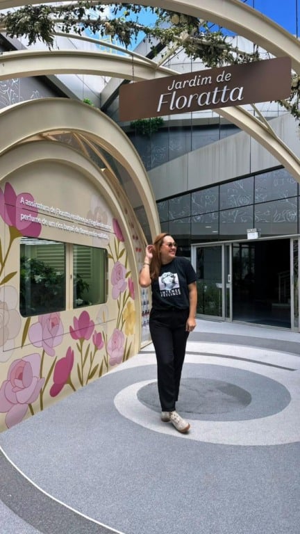 🌸 Élica Campos no Encontro das Regionais do O Boticário, em Curitiba. 🏭 A publicitária visitou a fábrica e registrou a foto no local que, na semana passada, foi palco de uma homenagem aos 30 anos do perfume Floratta. 💐✨