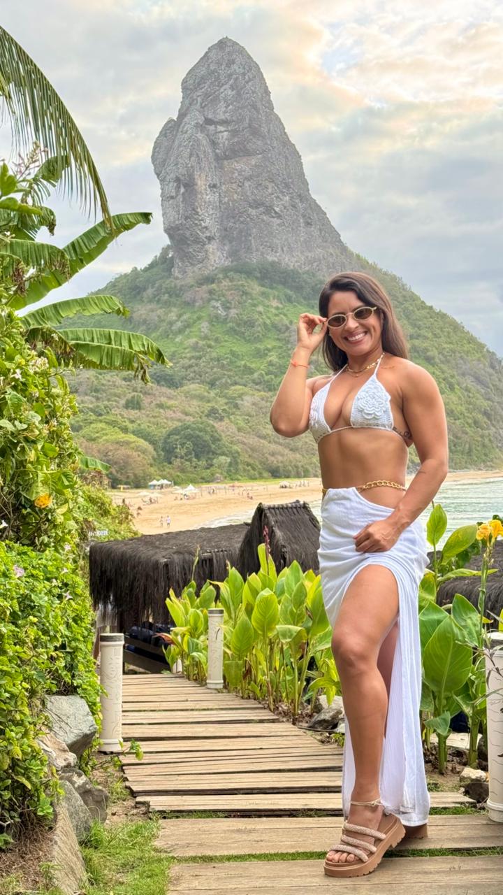 🏝️ Dea Letícia escolheu como destino das últimas férias o paraíso de Fernando de Noronha, arquipélago localizado a cerca de 545 km de Recife (PE). Formado por 21 ilhas e ilhotas, o destino é famoso por suas praias de águas cristalinas, areia dourada e paisagens intocadas. Entre os cartões-postais mais conhecidos está o Morro Dois Irmãos, símbolo de Noronha e um dos lugares mais fotografados do Brasil.