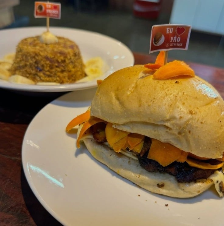 🧀🍌🥪Entre as opções do Café na Roça, o x-caboquinho se destaca como um clássico amazônico, preparado com pão francês, lascas de tucumã, banana pacovã madura frita, queijo coalho e manteiga — uma combinação que valoriza os sabores do interior e a tradição regional.