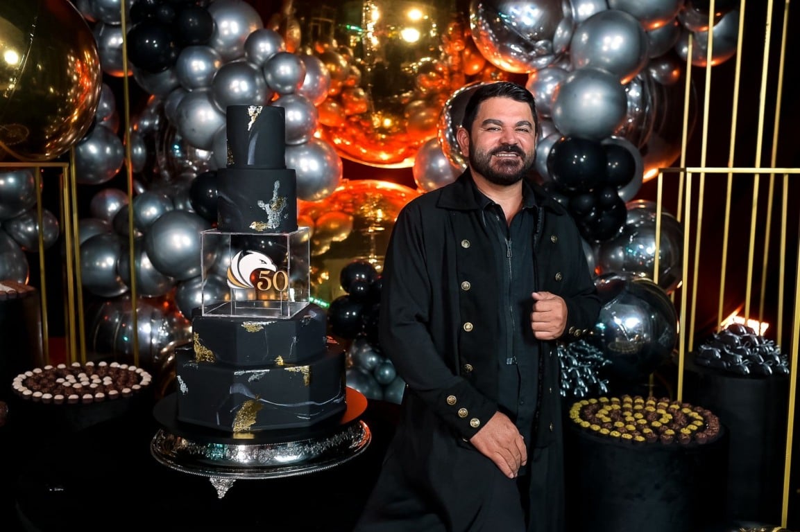 O empresário Petrucio Salvador (Supermercados Gavião), recebendo hoje kilométricas homenagens por conta de seu aniversário
