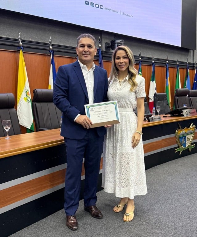O presidente da CAER, Dr. James Serrador, recebeu recentemente a comenda Orgulho de Roraima, na Assembleia Legislativa por indicação do deputado Marcos Jorge e aprovação unânime do parlamento. Na foto, ele divide clic com sua noiva, Nara Almeida