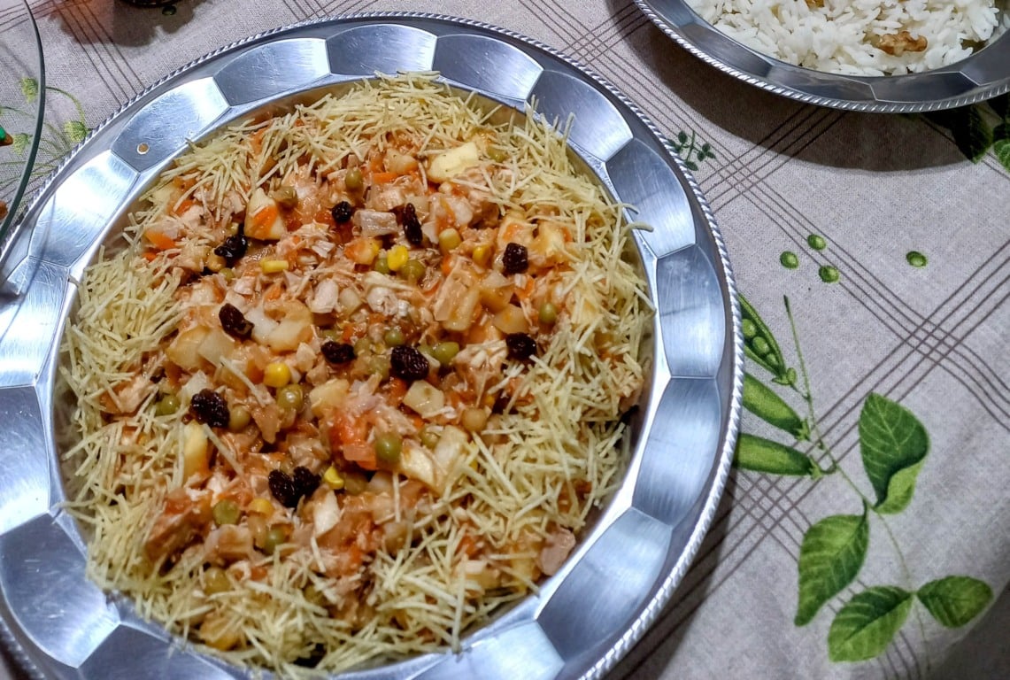 Como acompanhamento da ceia, que tal fazer um arroz incrementado com passas, cenoura, ervilha, milho, castanhas ou o que você gostar. O cálculo que você tem que fazer é uma xícara de cafezinho de arroz cru por pessoa. Além da carne e do arroz, o brasileiro gosta de uma farofa bem temperada para acompanhar, calcule quatro colheres de sopa por pessoa.