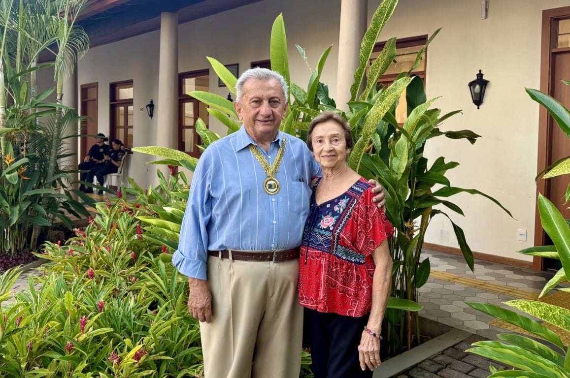 Dr. Aimberê Freitas, recebendo hoje kilométricas homenagens por conta de seu aniversário. Na foto, ele divide clic com sua  esposa Darci
