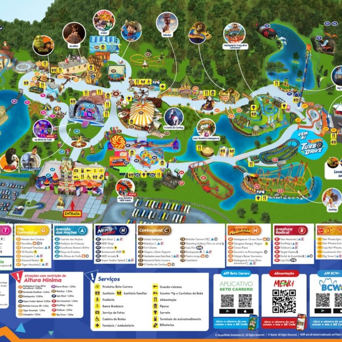 O Beto Carrero encanta visitantes de todas as idades com atrações como as montanhas-russas FireWhip e Star Mountain, o elevador Big Tower, o show dos Velozes e Furiosos, além dos encontros com personagens como Shrek, Madagascar e Bob Esponja. Para os pequenos, há passeios como o trenzinho da Ferrovia DinoMagic e áreas temáticas que misturam fantasia e aventura.
