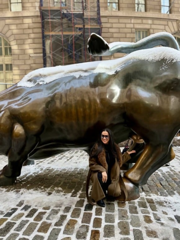 🗽✨Queila Ribeiro aproveita dias de descanso na cidade que nunca dorme. A empresária não perdeu a oportunidade de fazer a tradicional simpatia no Touro de Wall Street, garantindo os dólares da próxima viagem. 💰
