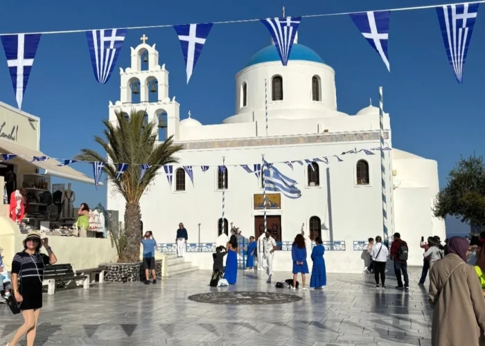 Santorini, com suas casinhas brancas e igrejas de cúpulas azuis, é um dos destinos mais icônicos do país. A vista para o mar Egeu, especialmente ao pôr do sol, é inesquecível. O local também oferece uma experiência gastronômica deliciosa, além de sítios arqueológicos. É o lugar perfeito para relaxar e admirar a beleza natural.