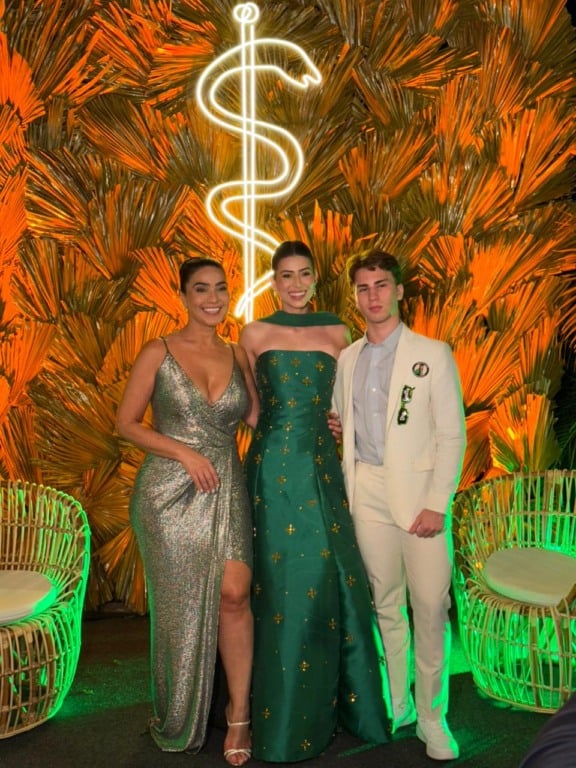 Emilly Esquivel é médica 🎓🥼e viveu uma noite especial para celebrar sua formatura. Ao lado da mãe Adriana e do irmão Gabriel, ela comemorou em uma noite marcada por emoção e orgulho 💙✨.