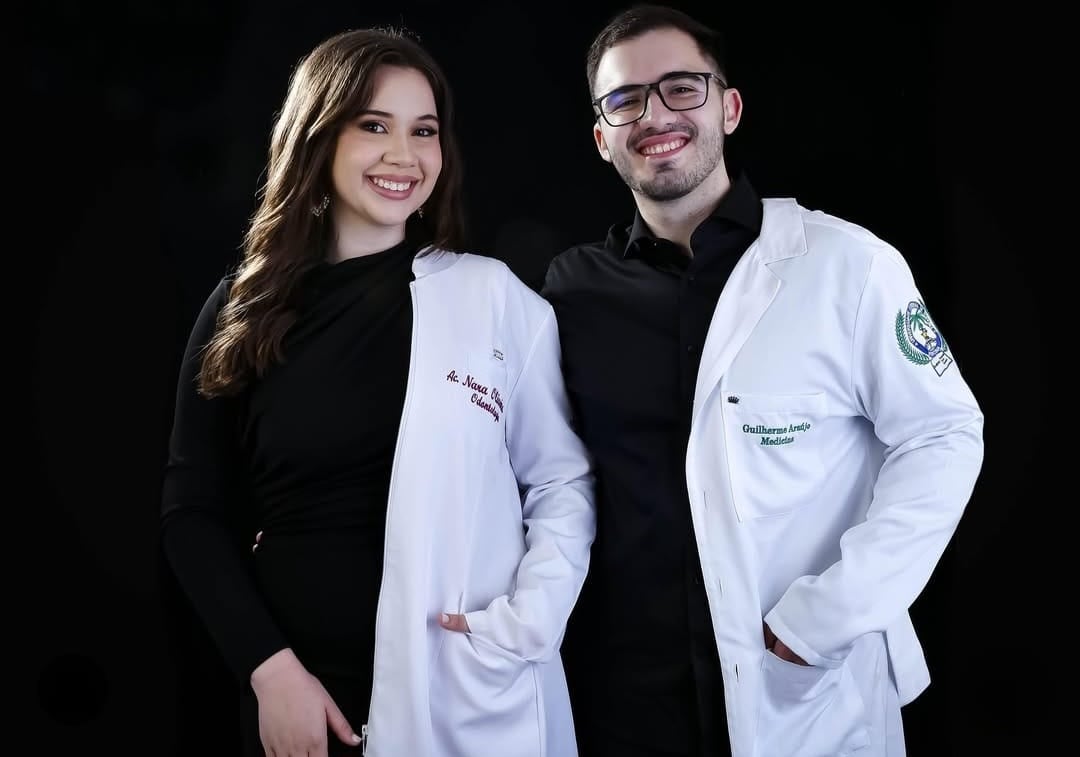 Ela em Odontologia 🦷 e ele em Medicina 🩺, posaram juntos para marcar essa conquista 📸.
