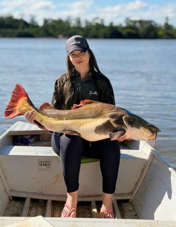 Nicolly Estephanny em dia de pescaria 🎣. A influenciadora digital aproveitou o final de semana de paz com o amado pelo Rio Uraricoera 🌊. E no final, o resultado deu bom 🐟.