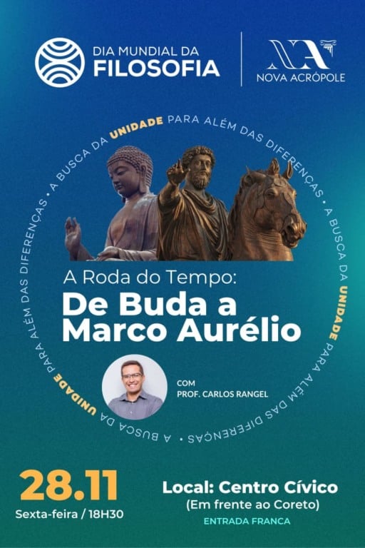 A Nova Acrópole celebra o Dia Mundial da Filosofia com atividades que inspiram união e consciência 🌍. Em Boa Vista, evento gratuito, será na próxima sexta-feira (28), às 18h30, na Praça do Centro Cívico🎭. Haverá apresentações artísticas e a palestra “A Roda do Tempo: de Buda a Marco Aurélio” 📚.