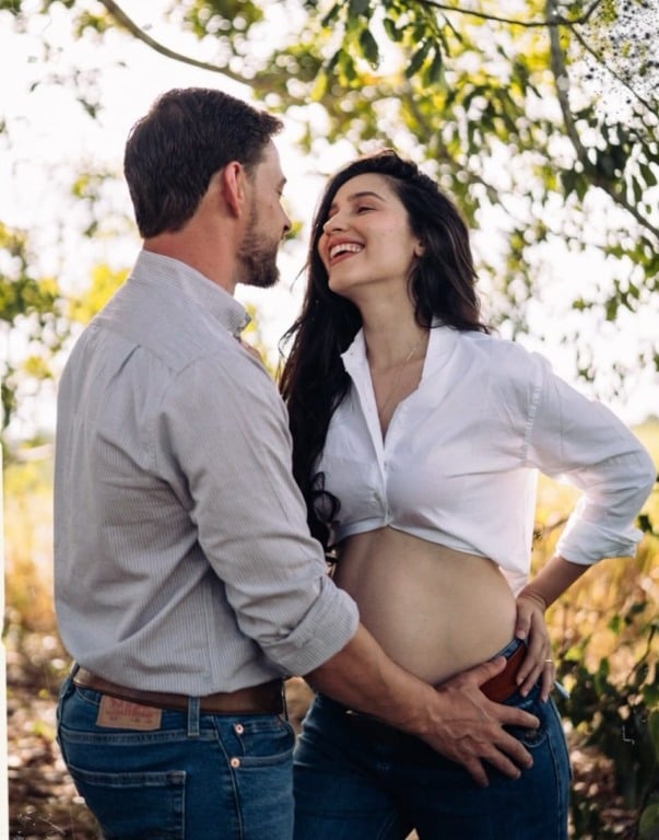 💙👢 Carlos Zuanazzi e Aline Zago estão à espera de um menino. O casal do ramo agropecuário celebrou o chá revelação em grande estilo, com clima country, bota e fumaça azul anunciando a chegada do herdeiro.👶