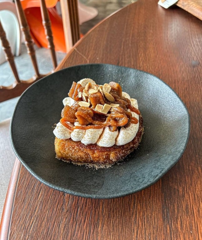 Temporada natalina é época de rabanada — e a Atta Casa e Café apresenta uma versão especial desse clássico 🎄. Feita com brioche leve e macio selado na manteiga, a receita ganha maçãs refogadas com açúcar e canela, mantendo textura firme e sabor aconchegante 🍎. Uma camada generosa de chantilly traz leveza, enquanto o caramelo salgado e as lascas de amêndoas finalizam com contraste perfeito de sabor e crocância.
