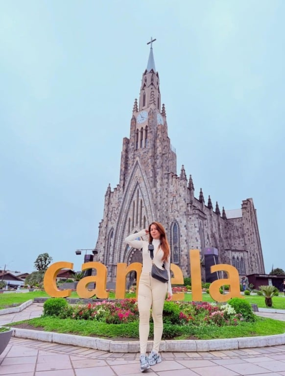 Sammyla Andrade curtindo dias especiais em Canela 🌲. A contadora aproveitou os cartões-postais da região, registrando cada beleza 📸. Uma viagem marcada por paisagens encantadoras e momentos inesquecíveis ❄️.
