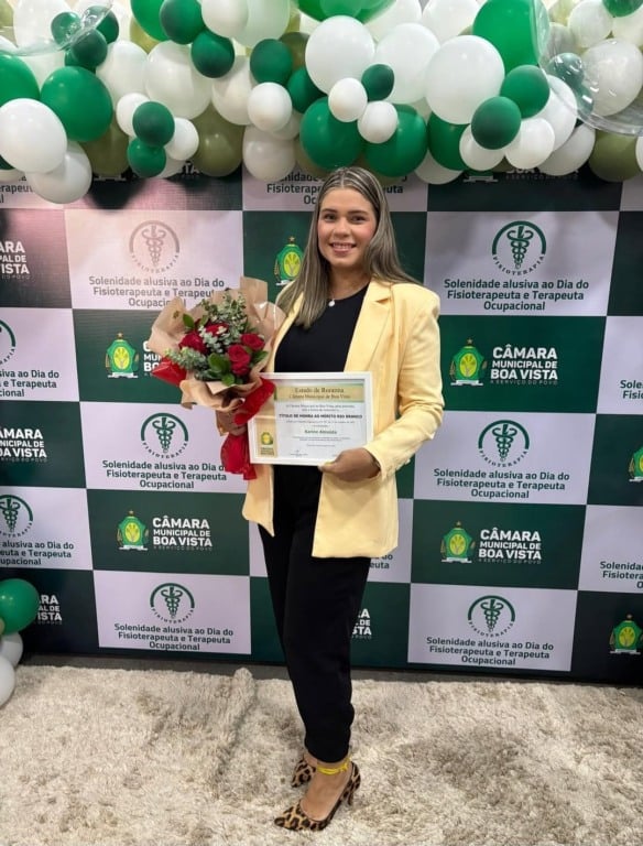 🏅 Karine Almeida recebe Título de Honra ao Mérito Rio Branco 👏. A fisioterapeuta foi uma das homenageadas pela Câmara Municipal de Boa Vista em celebração ao Dia do Fisioterapeuta, reconhecimento por sua dedicação e contribuição à saúde e bem-estar da comunidade. 💚💆♀️