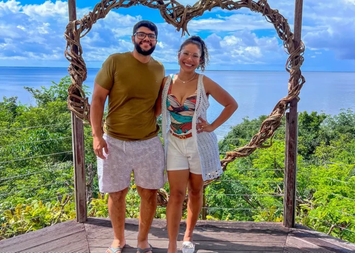 Durante a estadia, o casal teve a oportunidade de vivenciar a experiência única oferecida pela Casa do Saulo, localizada na Praia de Carapanari. O local proporciona aos visitantes a chance de passar o dia desfrutando de uma piscina refrescante, acesso direto à praia de águas mornas e areias brancas, além de uma vista panorâmica deslumbrante para o Rio Tapajós, criando o cenário perfeito para momentos de relaxamento.