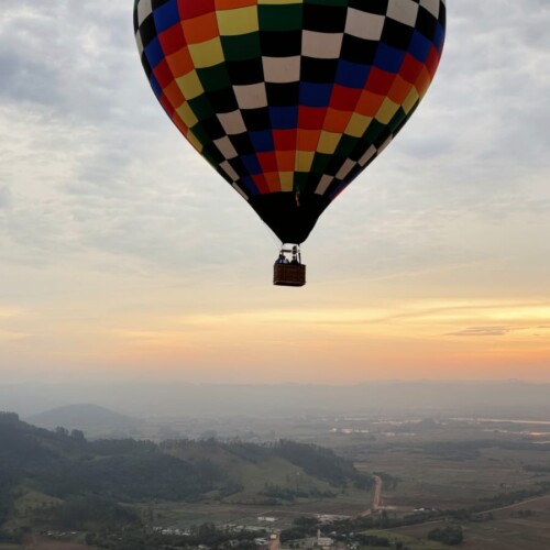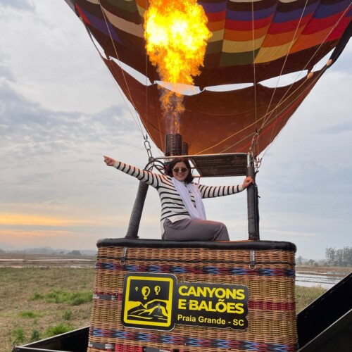 Bruna Gomes passou férias no sul do país e aproveitou para voar de balão em Praia Grande, Santa Catarina, conhecida como a capital dos Canyons. Os voos acontecem ao amanhecer, quando a paisagem ganha tons dourados e o visual panorâmico dos cânions e vales se revela em toda a sua grandiosidade. É uma experiência única de contemplar a natureza de um ponto de vista privilegiado, em meio ao silêncio das alturas.