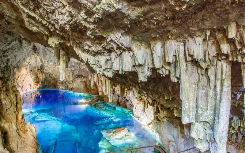 A Gruta do Lago Azul talvez seja o cartão-postal mais famoso de Bonito, de coloração azul vibrante que encanta à primeira vista, especialmente pela manhã, quando o sol atravessa a entrada. Já a Gruta da Cathedral, proporciona uma experiência singular com formações rochosas que lembram uma catedral natural, além de espelhos d’água que tornam o ambiente ainda mais místico e contemplativo. Ambas revelam o lado mais enigmático de Bonito, onde a geologia se une à beleza em perfeita sintonia.