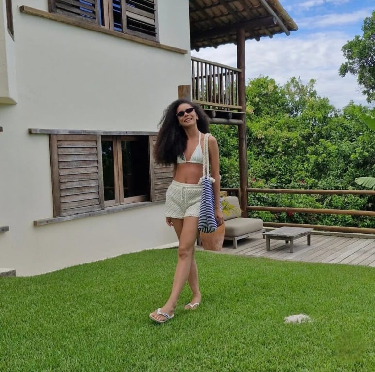 ☀️🌊Mércia Lopes aproveita dias de férias pela Bahia. Sol no rosto, água fresca em Trancoso e muito pé na areia. Entre praias lindas e comida boa, o descanso é completo. 🏖️🍹