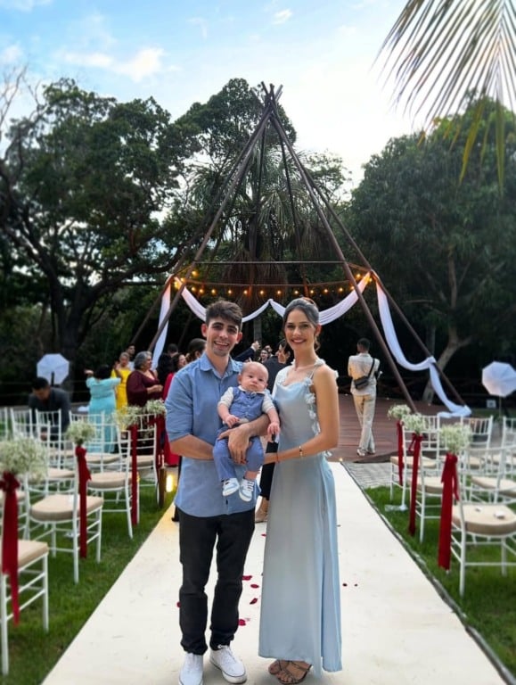 ✨👨👩👦 Henrique, Palloma Cordeiro e o pequeno Ravi curtiram um dia especial de festa ao prestigiar um casamento, reunidos em um momento de alegria e união. 📸✨