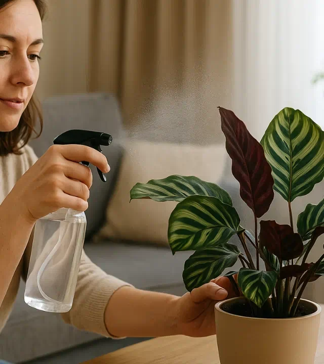 A calatéia (Calathea spp.) é nativa de florestas tropicais úmidas da América do Sul, onde o solo rico em matéria orgânica e o ar carregado de umidade criam condições perfeitas para seu desenvolvimento. Em ambientes internos, esse equilíbrio é fácil de perder. Muitas vezes, o problema não está na falta de rega, mas no ar seco, comum em casas com ar-condicionado, aquecedores ou ventilação insuficiente.