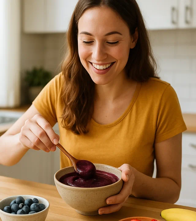 O segredo está na simplicidade. Uma colher de sopa da polpa natural já faz diferença. Você pode adicionar o açaí puro em sucos, vitaminas ou bowls com frutas frescas. Ele combina bem com banana, morango e aveia, e mantém o corpo energizado por horas.