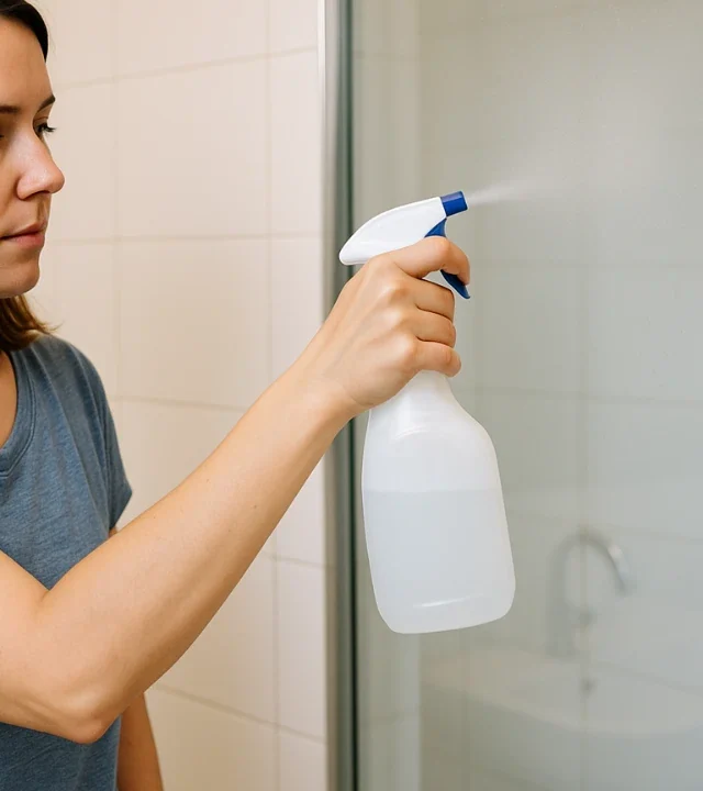 Para um resultado ainda mais impactante, aplique a mistura com um borrifador diretamente sobre o vidro do box após o banho. A ação do vapor potencializa o efeito, e em poucos segundos você verá a diferença. Basta passar um pano seco para finalizar — nem é necessário repetir diariamente. Usar 2 a 3 vezes por semana já mantém o banheiro com cara de recém-limpo.