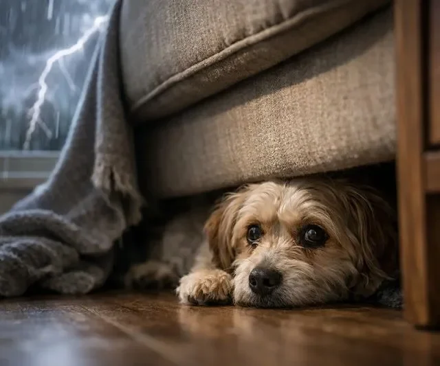 Ao contrário do que muitos imaginam, o medo de tempestades não é frescura ou comportamento mimado. O cão, assim como os humanos, pode desenvolver fobias reais — e, no caso das tempestades, vários fatores se combinam para isso acontecer.