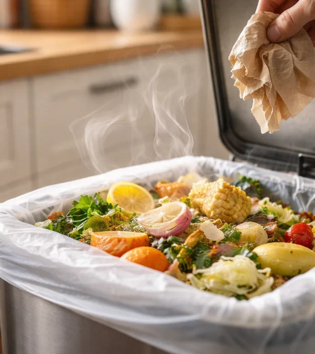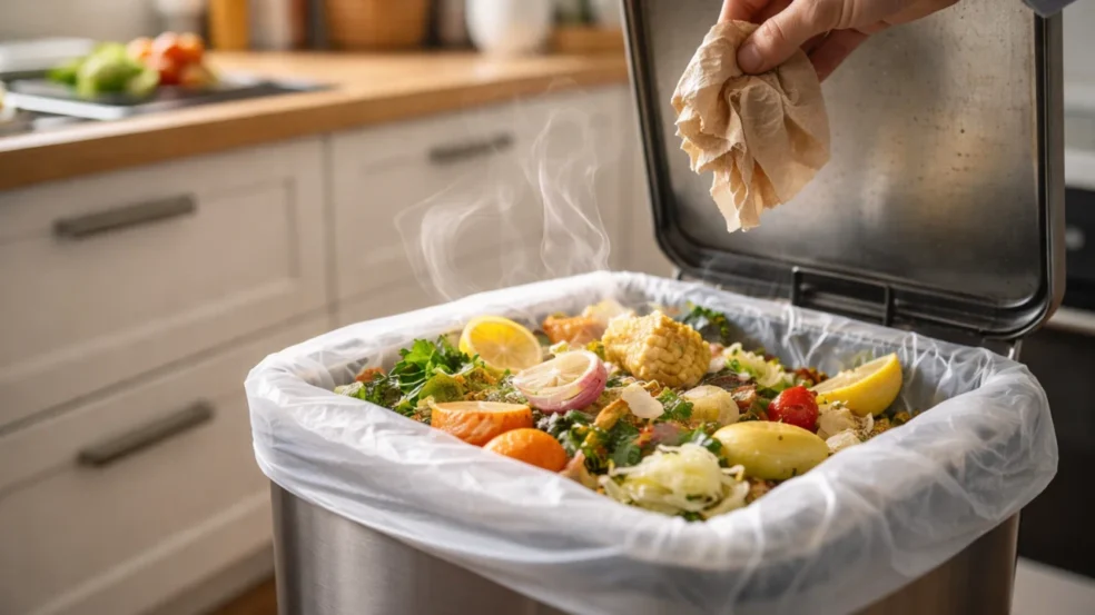 Restos orgânicos liberam gases desde o momento em que são descartados. Cascas, restos de proteína, embalagens com resíduos e até guardanapos usados começam a decompor quase imediatamente. Quando a tampa da lixeira é aberta várias vezes ao dia, esses gases escapam aos poucos, se espalhando pelo ambiente sem gerar um “cheiro forte” imediato.