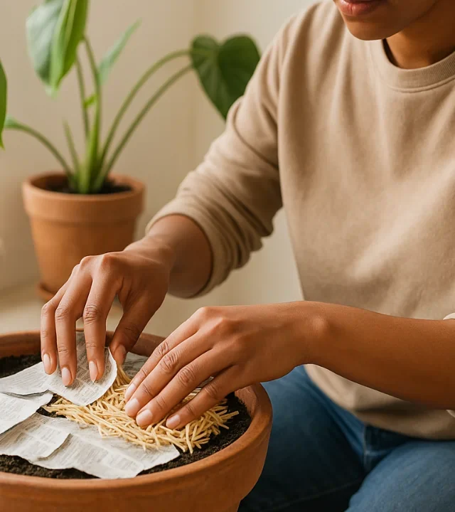 Esse truque com jornal evita o ressecamento da terra e reduz a rega pela metade