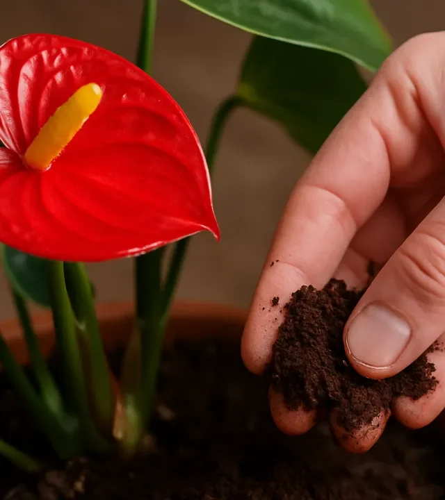 Um dos grandes atrativos do antúrio são suas inflorescências cerosas e coloridas. E acredite: uma planta bem nutrida floresce com muito mais frequência. A combinação de um solo úmido, rico e levemente ácido — condições que a borra de café ajuda a promover — favorece a formação de novas flores ao longo do ano. O resultado? Um vaso sempre cheio de vida, mesmo fora da época tradicional de floração.