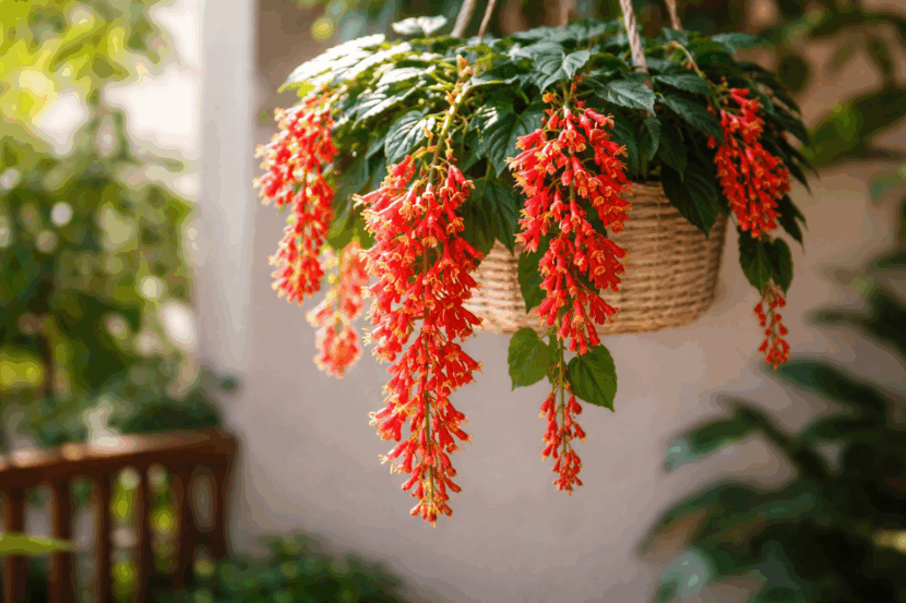 Outro truque é usar vasos de cerâmica em tons claros ou pendurá-la em suportes de madeira com acabamento natural. Esses materiais não competem visualmente com a planta e ainda ajudam a controlar a umidade. A flor-de-coral não gosta de solo encharcado, mas também não tolera ressecamento extremo, então o vaso precisa ter boa drenagem e uma camada de argila expandida no fundo.