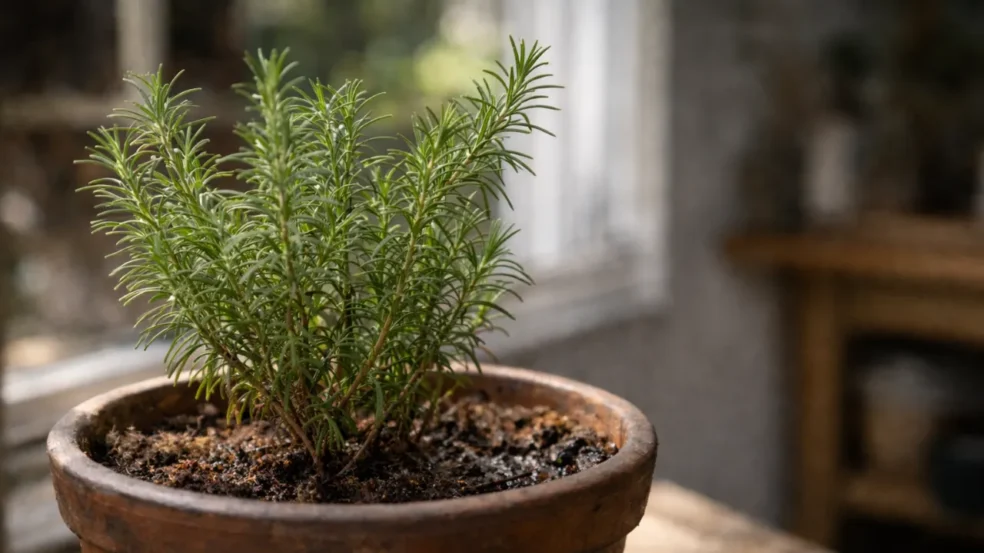 Outro detalhe que costuma passar batido é a localização do vaso. Em muitos lares do interior, o alecrim é deixado na varanda, próximo a muros ou superfícies de cimento que refletem ainda mais calor. Esse microclima esquenta demais as raízes, dificultando o desenvolvimento da planta. O resultado é um arbusto com galhos ressecados e folhas menos aromáticas — bem diferente daquele alecrim cheio e perfumado que se espera.
