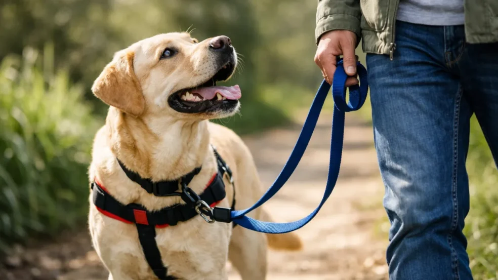 O tipo de coleira e guia que você usa também influencia no sucesso do treinamento. Para Labradores, que têm o pescoço forte, é recomendado o uso de peitoral do tipo anti-puxão ou coleiras frontais, que redirecionam o movimento do cão em vez de causar dor.