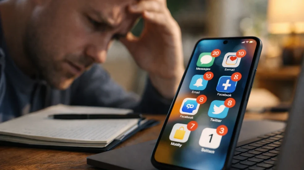 Mais do que diminuir sua eficiência, o excesso de notificações tem efeitos psicológicos sérios. A ansiedade aumenta, a sensação de estar sempre devendo algo se intensifica, e sua memória de curto prazo é constantemente sobrecarregada.