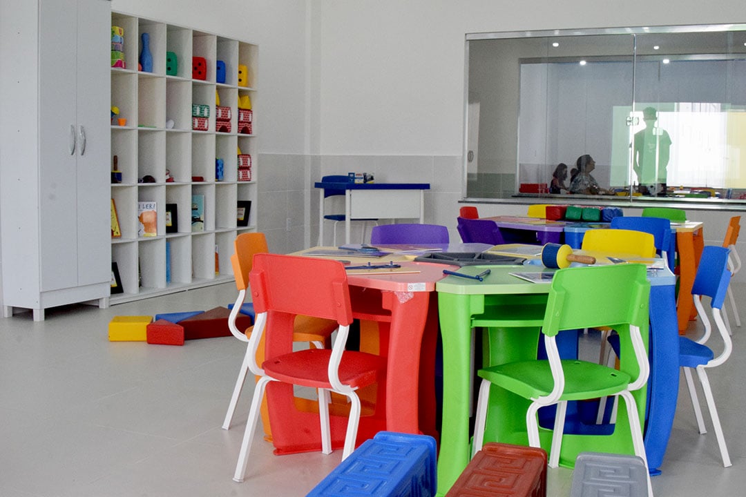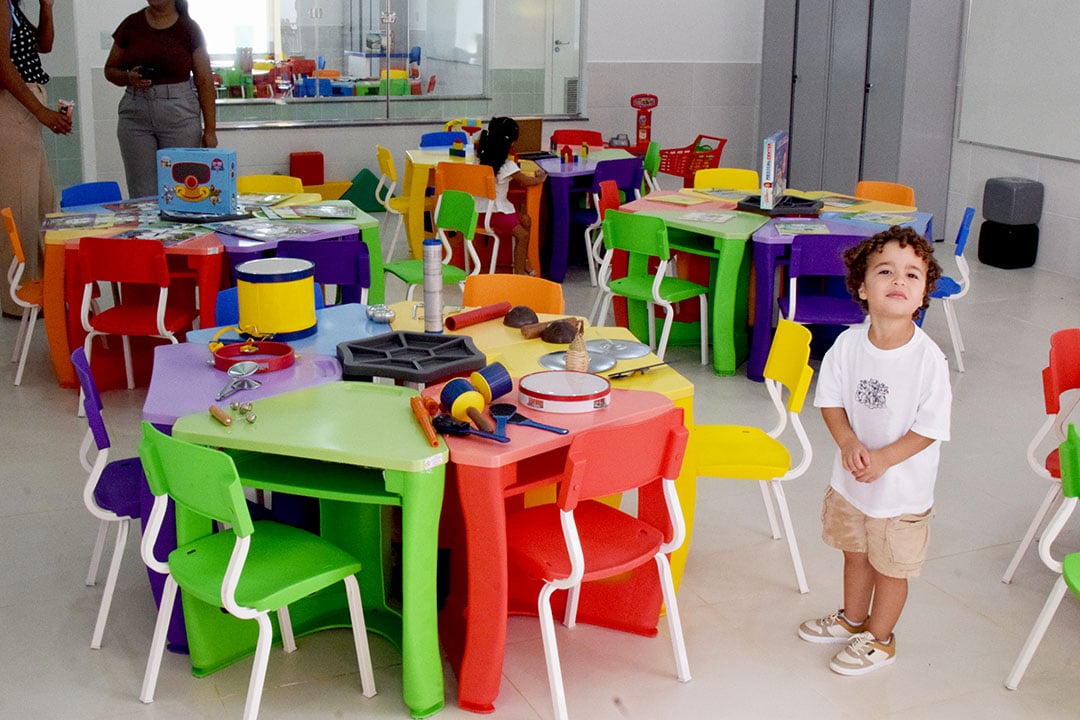 A unidade conta com 16 salas de aula e uma sala multifuncional voltadas para a educação infantil, além de espaços destinados a atividades pedagógicas e recreativas, garantindo mais conforto e segurança para os alunos e profissionais.