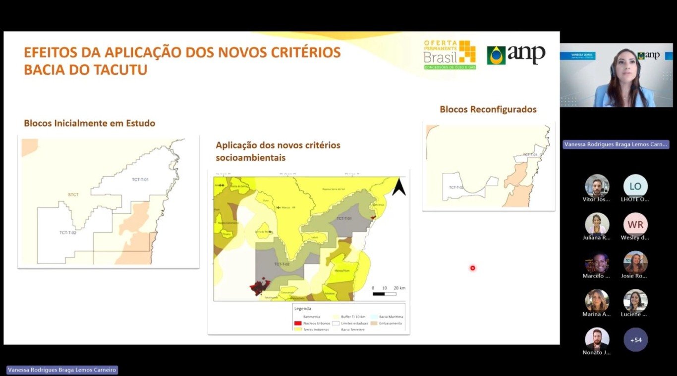 Vanessa Lemos, da superintendência de tecnologia e meio ambiente da ANP, esclareceu que, após análise legal, houve um recorte nos blocos exploratórios de Roraima que passaram a ter dez quilômetros de distância de terras indígenas como São Marcos, Jabuti, Canauanim, Tabalascada e Manoá/Pium.