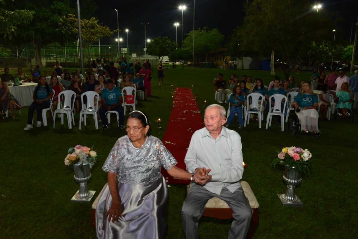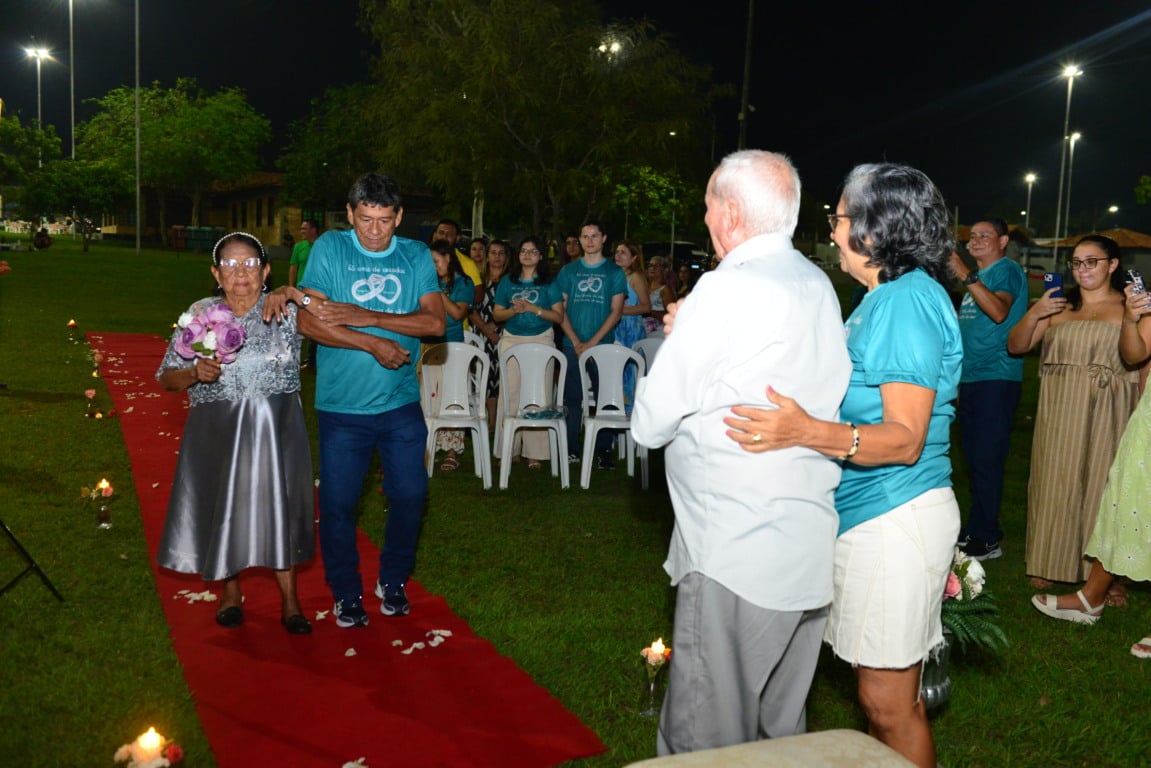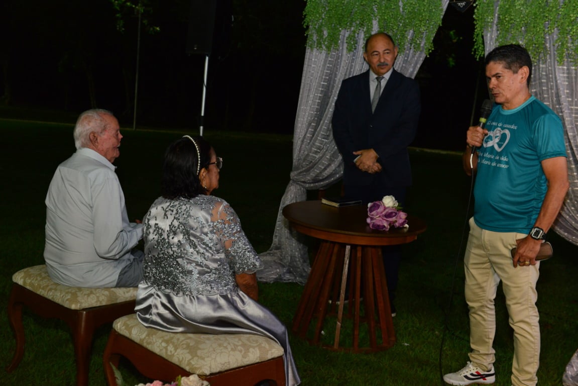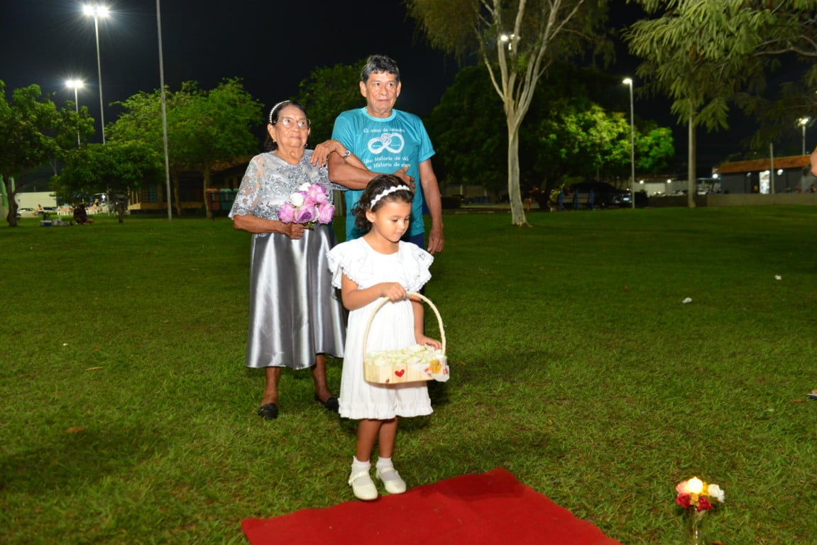 A cerimônia desse domingo foi conduzida pelo pastor Frankembergen e contou com homenagens de filhos, netos e bisnetos. Na entrada, o casal foi acompanhado pelos filhos mais velhos, Marlete e Marnildes.