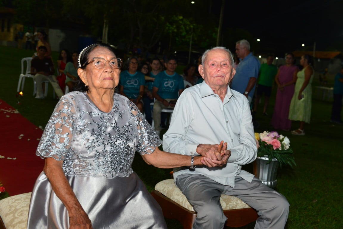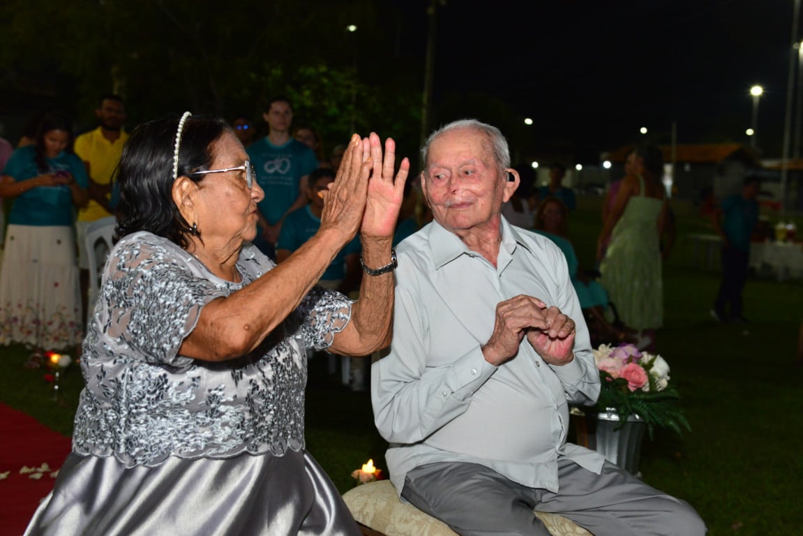 Casados há 65 anos, Democildes José da Silva, de 94 anos, e Margarida Melo da Silva, de 90, celebraram nesse domingo (19) as Bodas de Platina, em uma cerimônia marcada por emoção, fé e pela presença de quatro gerações da família. O casal oficializou a união em 19 de outubro de 1960, na antiga Prelazia, e desde então construiu uma trajetória que se tornou exemplo de companheirismo e devoção.