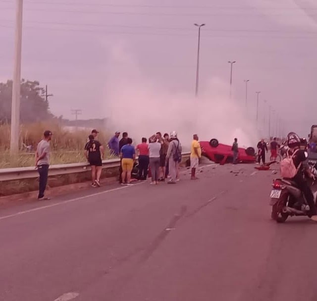 Vídeos feitos por populares que passavam pelo local, mostram que o acidente provocou derramamento de combustível na pista e que o veículo chegou a apresentar princípio de incêndio.