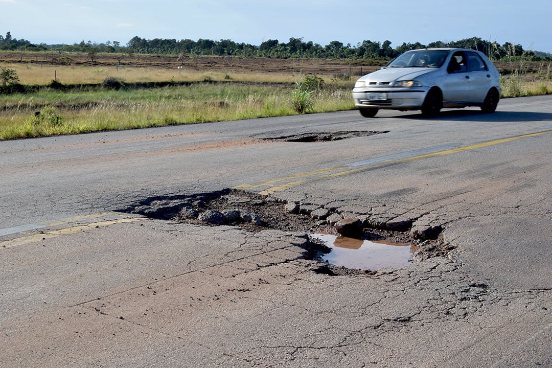 Na medida em que a capital de Roraima fica mais distante, a quantidade de buracos e o tamanho das crateras aumentam, a exemplo da zona rural de Rorainópolis, em que motoristas precisam trafegar em zigue-zague.