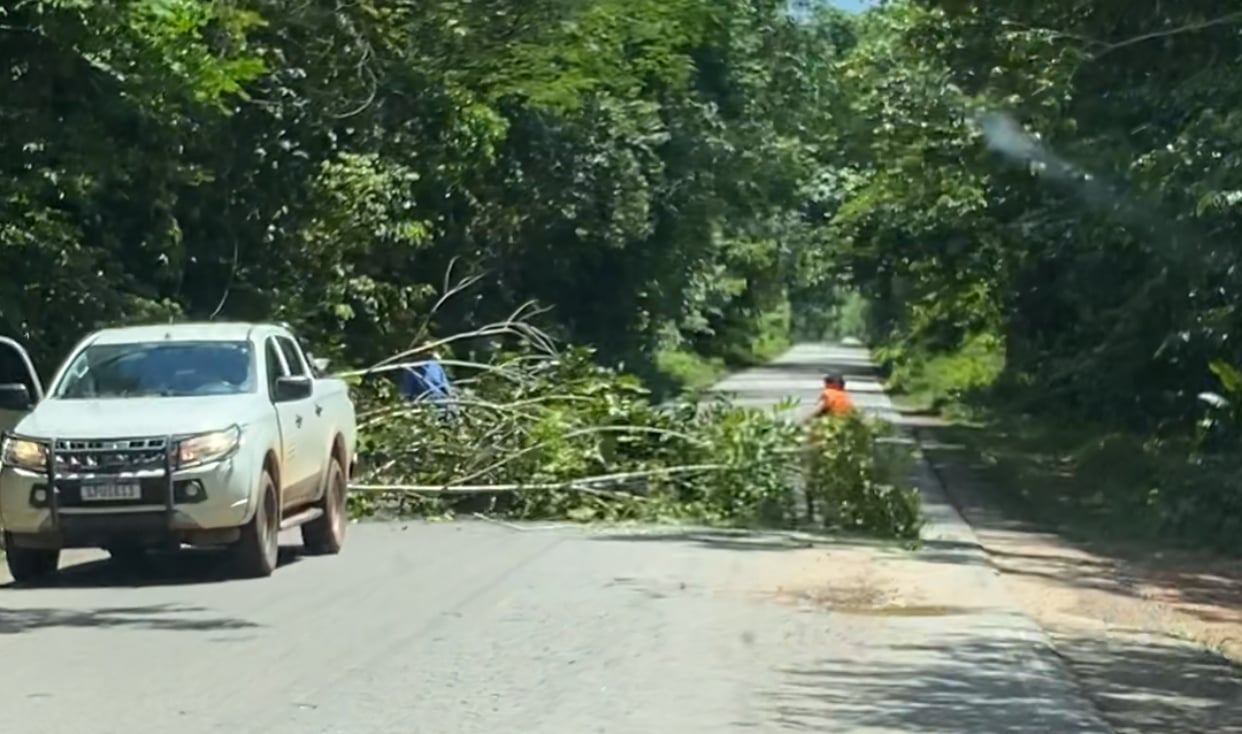 Dentro do território indígena, o mato e as árvores tomam conta da pista. Por vezes, a densa vegetação, naturalmente, cai sobre a pavimentação em meio à chuva e ao vendaval, ocasião em que os próprios indígenas ajudam a retirá-la. A Folha BV, inclusive, flagrou uma dessas retiradas.