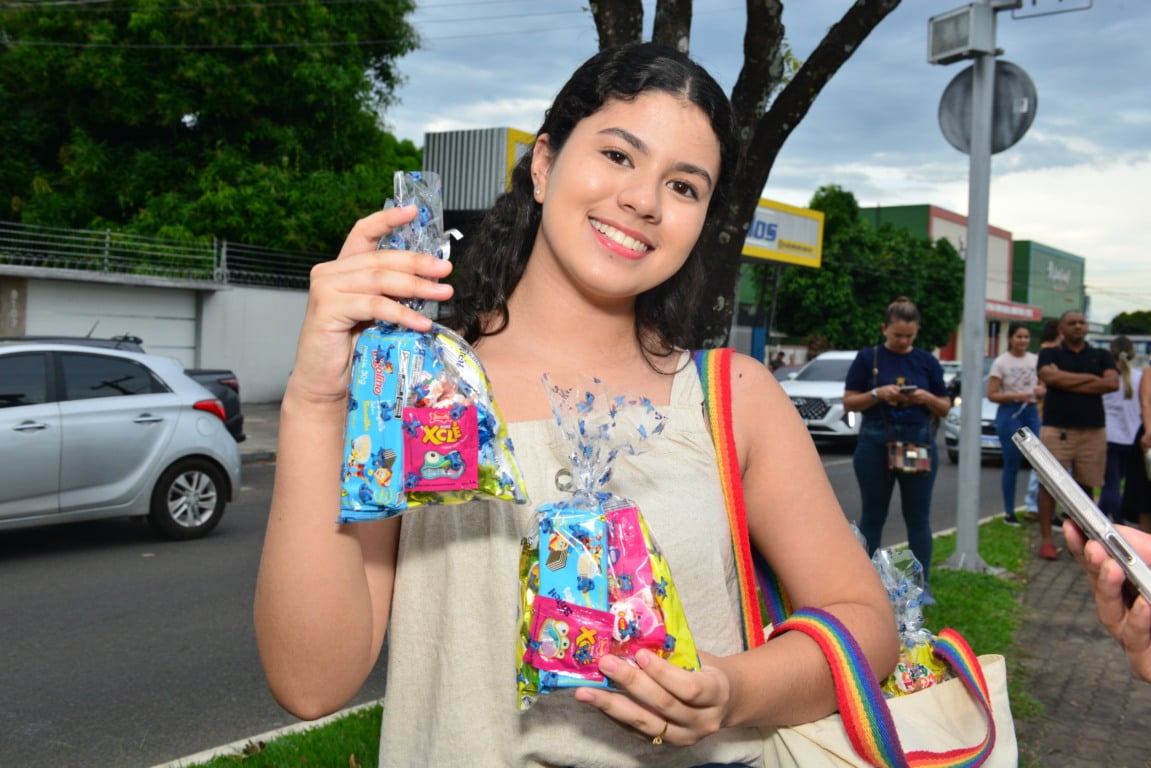 “Os doces são para as crianças, é um gesto de amor. Isso me motiva a vir todos os anos, é um gesto de caridade, de ajudar num dia tão importante. Esse dia me comove muito desde pequena e é algo que sinto no coração mesmo”, disse.