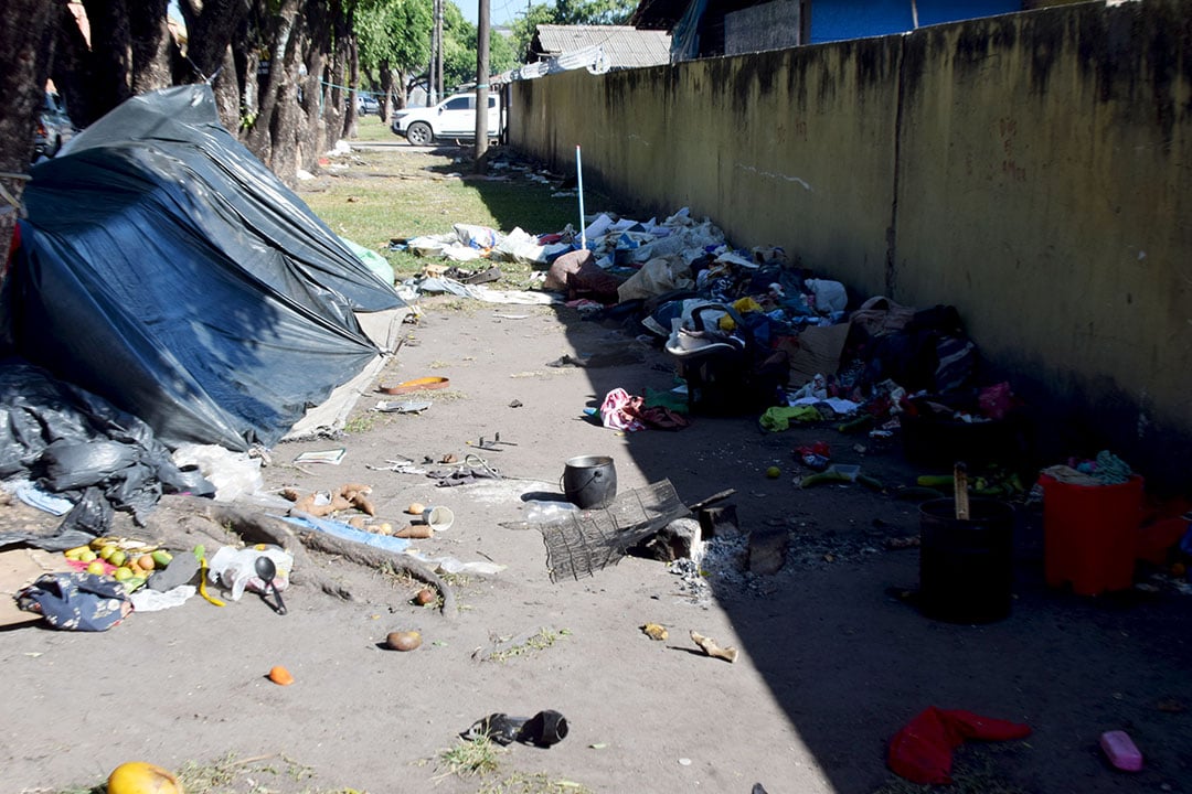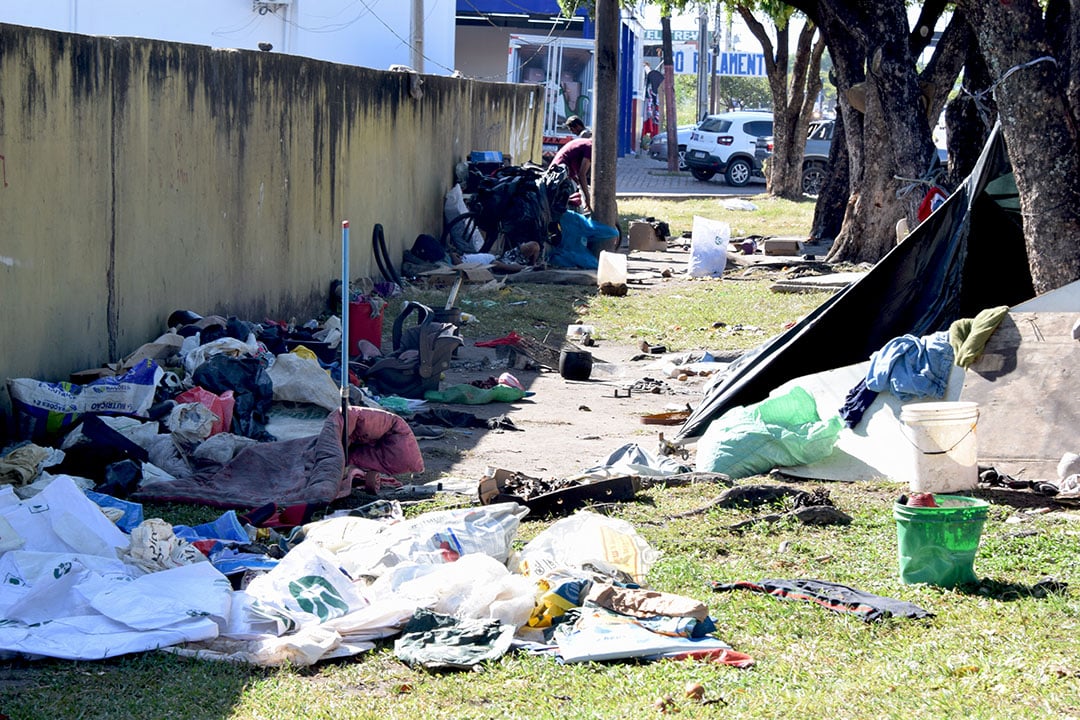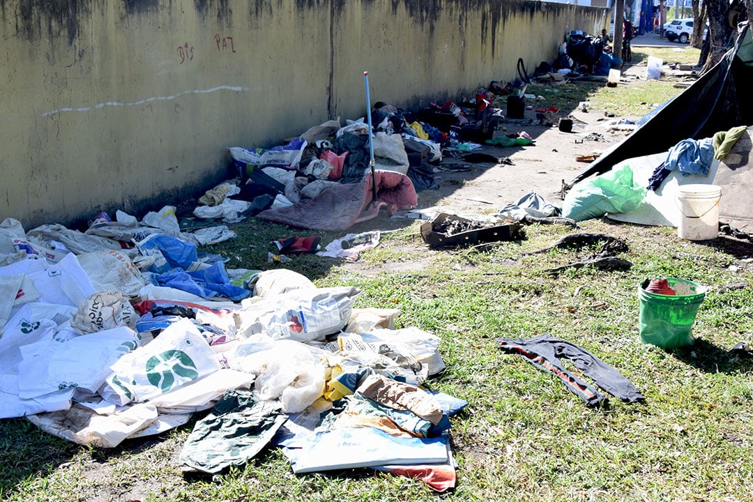 O espaço que estava ocupado pelos indígenas apresentava acúmulo de lixo, restos de alimentos, fezes e forte odor de urina. No local, também havia imigrantes venezuelanos em situação de rua.