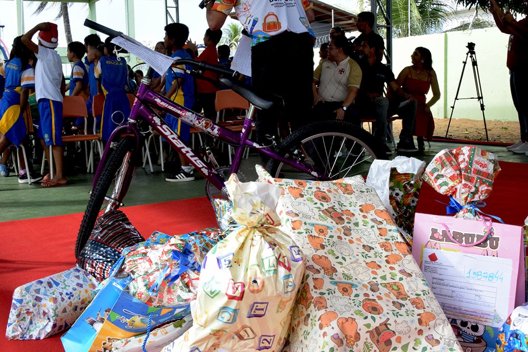 Entre os alunos, um dos momentos mais especiais foi o de Jucielly Sofia Vieira, de 8 anos, estudante do 2º ano, que pediu ao Papai Noel uma bicicleta. Ao receber o presente, a sensação foi simples e direta: “Foi legal porque era um sonho meu”, disse.