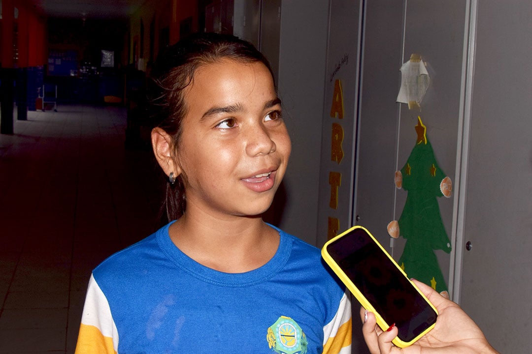 Outra aluna contou o que deseja ganhar do papai noel, Sofía Guzman, de 10 anos, pediu um tablet. “Eu escrevi em sala com a professora que queria um tablet. Achei muito legal o projeto com a minha escola”, contou.